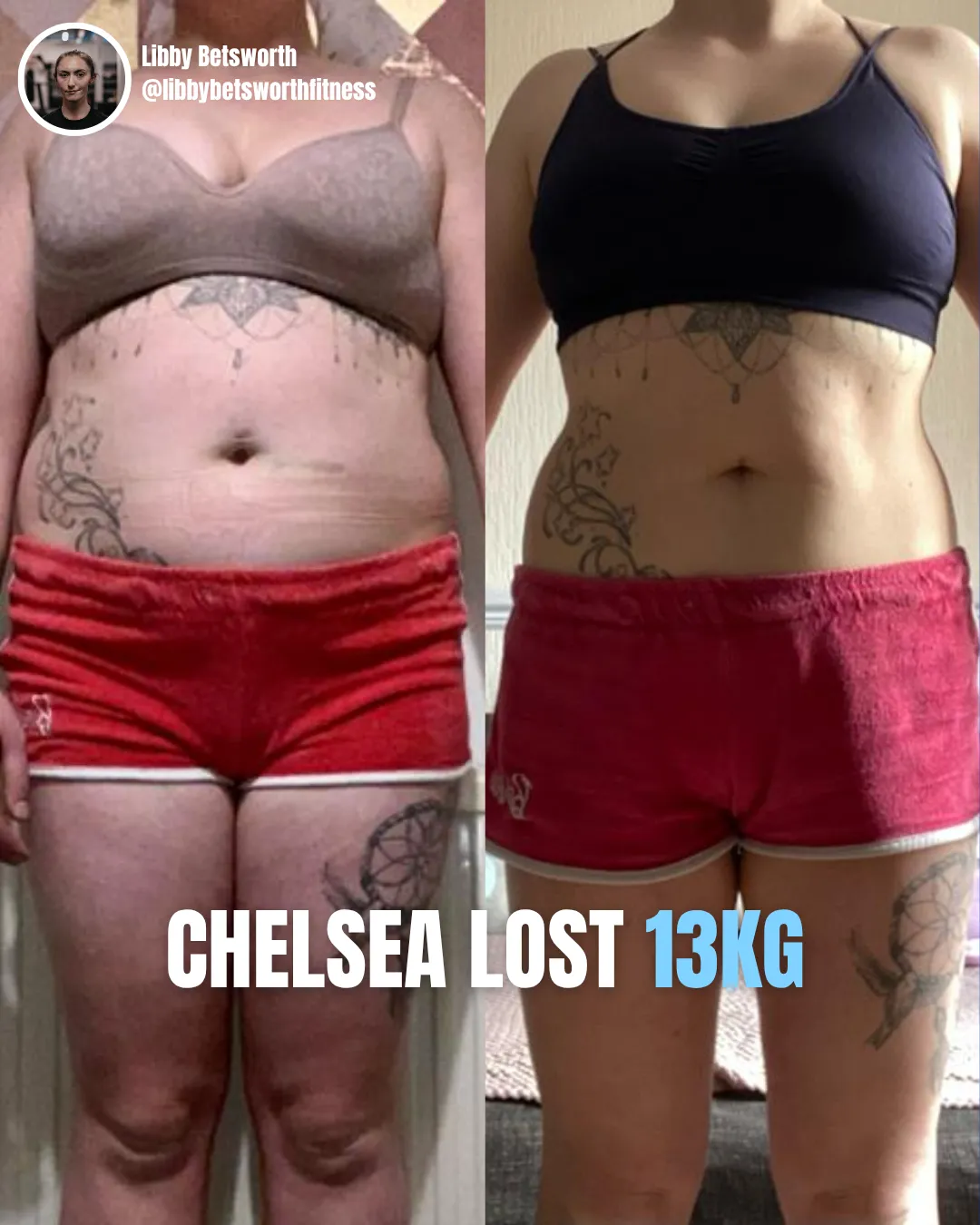 "Before starting with Libby, I felt exhausted all day and I had no self confidence at all. Now I look forward to exercising, my mental health has improved and I’m happier in my body. My advice is don’t wait, start now and you could be feeling how I feel in a matter of weeks!!"