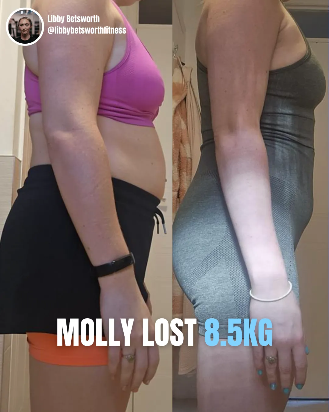 "I hadn’t realised how much weight I had gained and I got to the point and thought I’ve got to change something. Working with Libby has been the best thing I’ve chosen to do, she’s made it so you feel like it’s on your terms and works for you and around a busy working pattern and lifestyle. I look at these photos and think yes Molly you’ve done it! I can wear clothes I actually feel comfortable in. Thankyou so much Libby”
